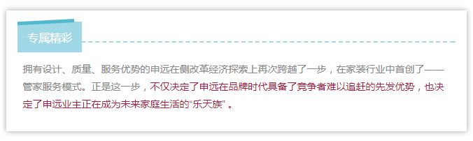 一种一站式的服务,业主不但能体验省心省力的装修服务,还能找到让自己满意终其一生的家装方案。