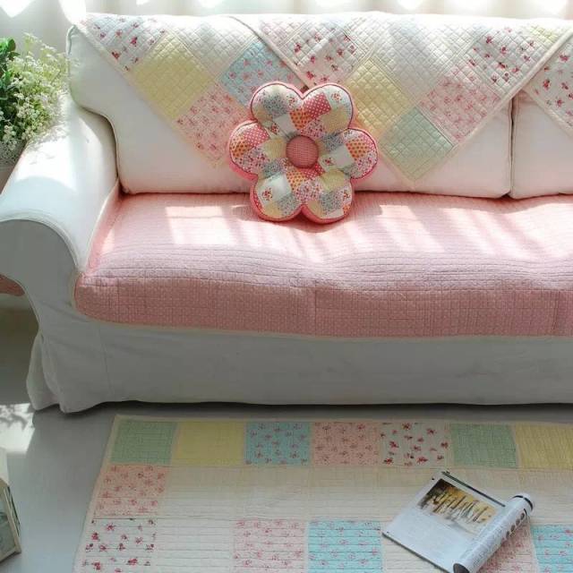 多色碎花抱枕+纯色坐垫+白色底=清新现代风格